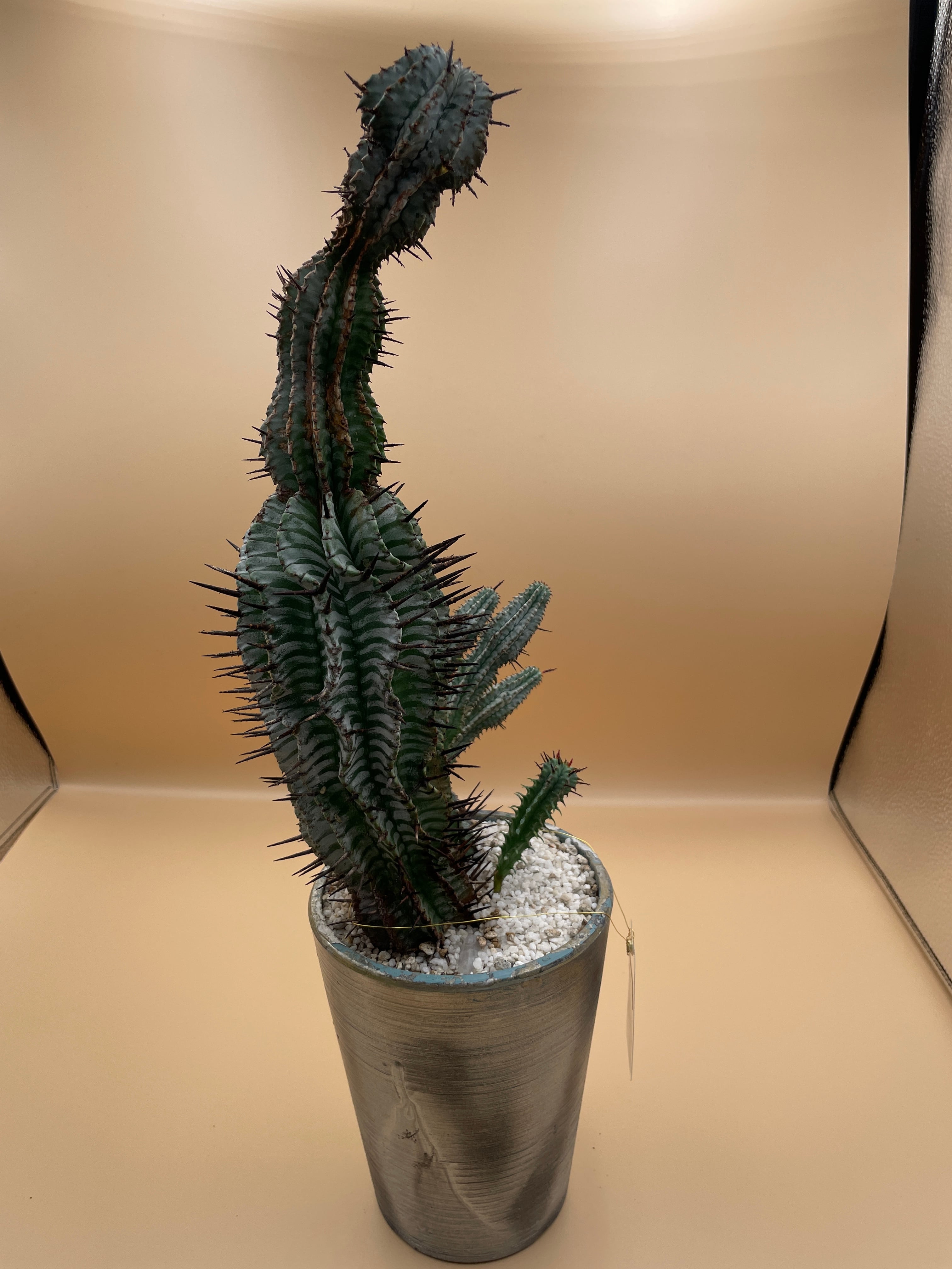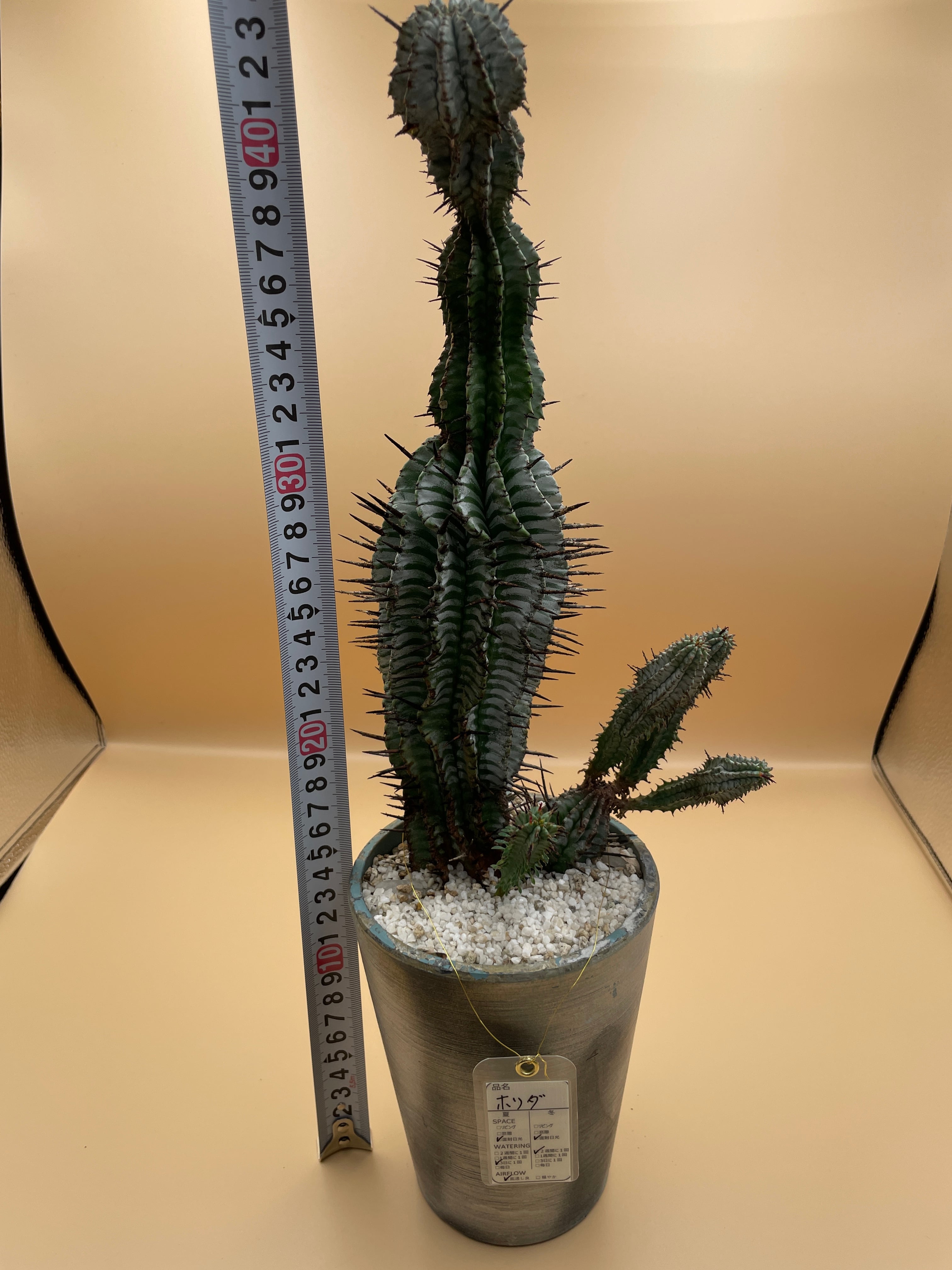 国内でじっくりと時間をかけて作り込まれた個体であり、その鋭い棘と力強いフォルムは、まさにリビングや温室の主役(メインツリー)にふさわしい風格を放っています。
