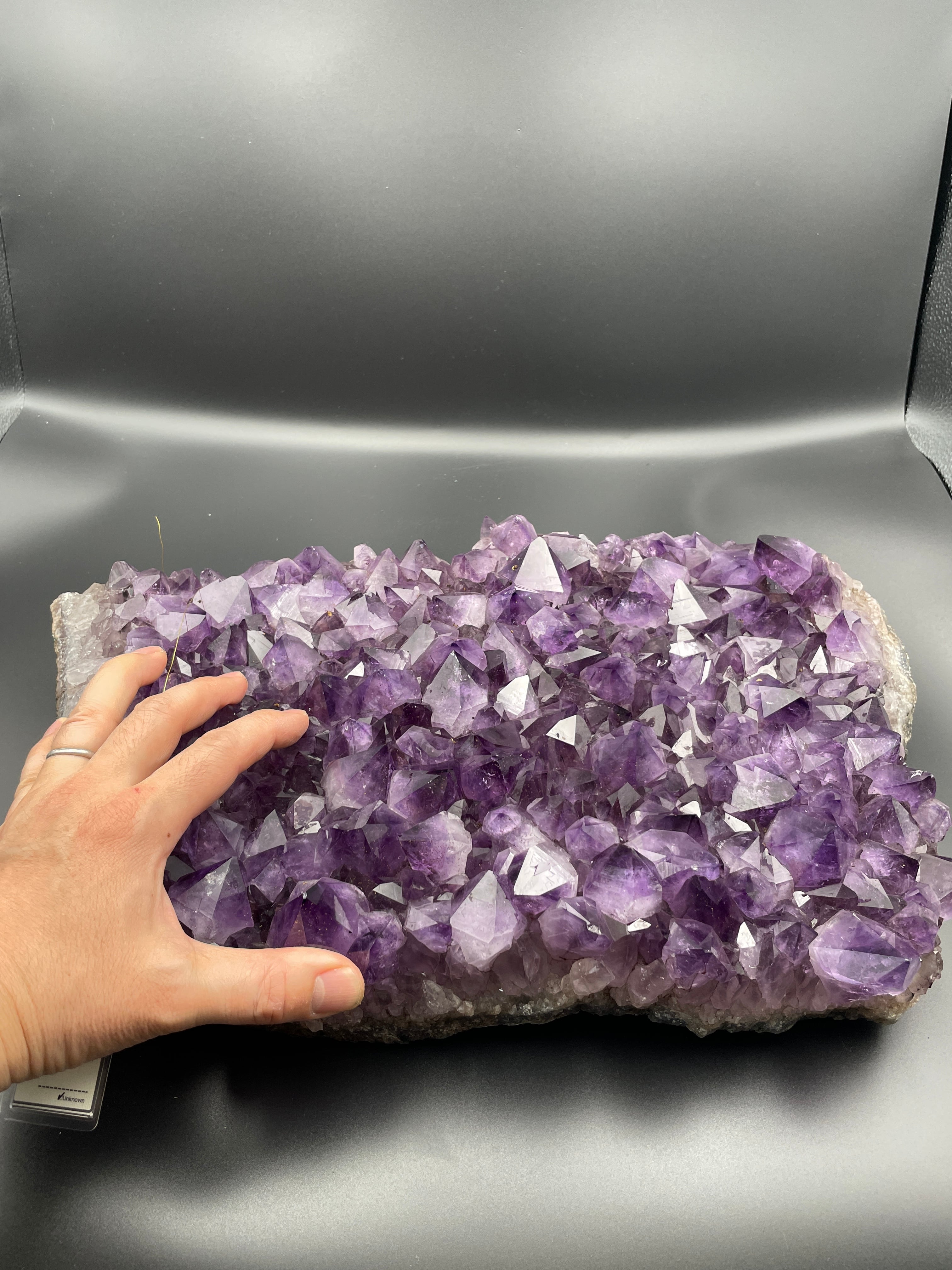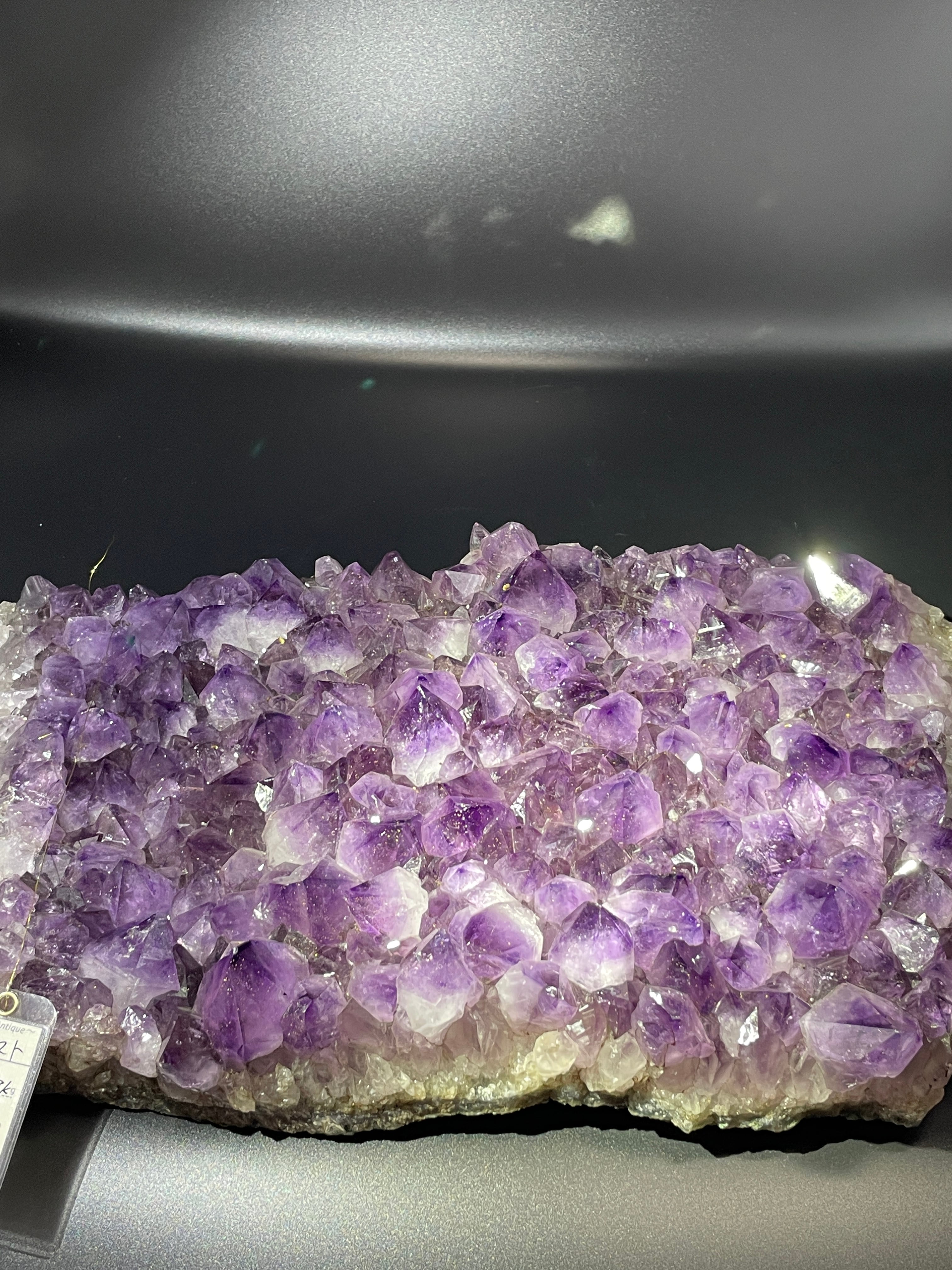 一目見てその広がりと存在感に圧倒される、特大サイズのアメジストプレートです。