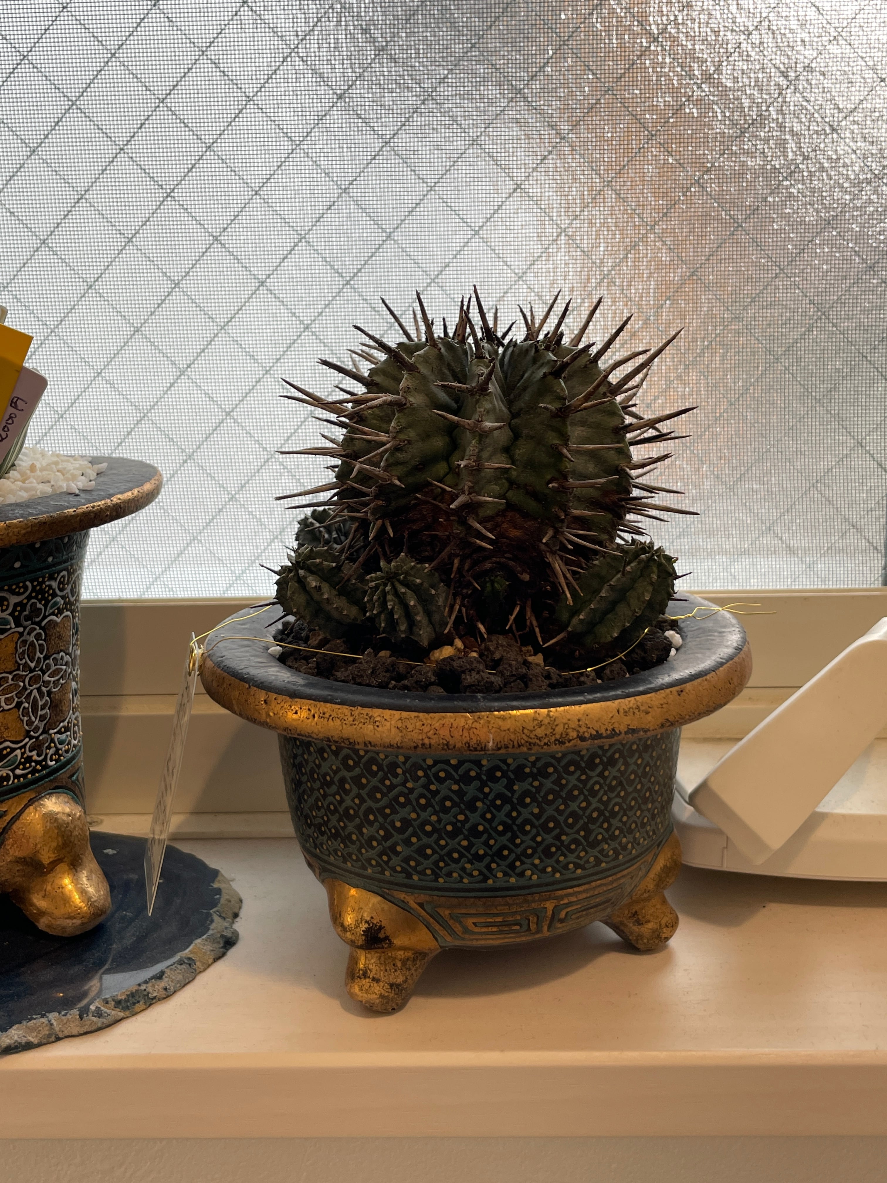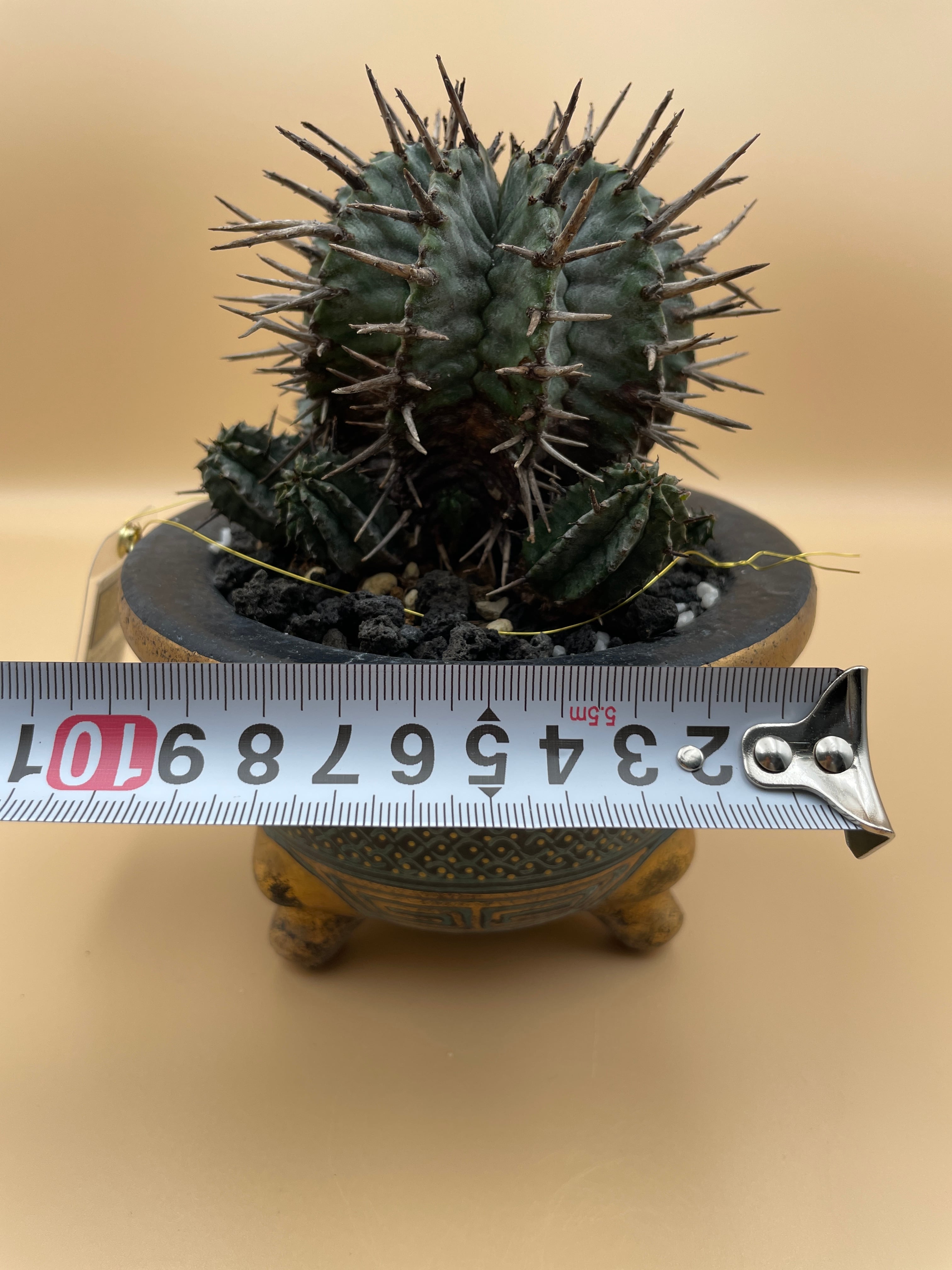 【稀少・群生株】ユーフォルビア・ホリダ(金の万年青鉢仕立て・子株9個付き)