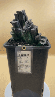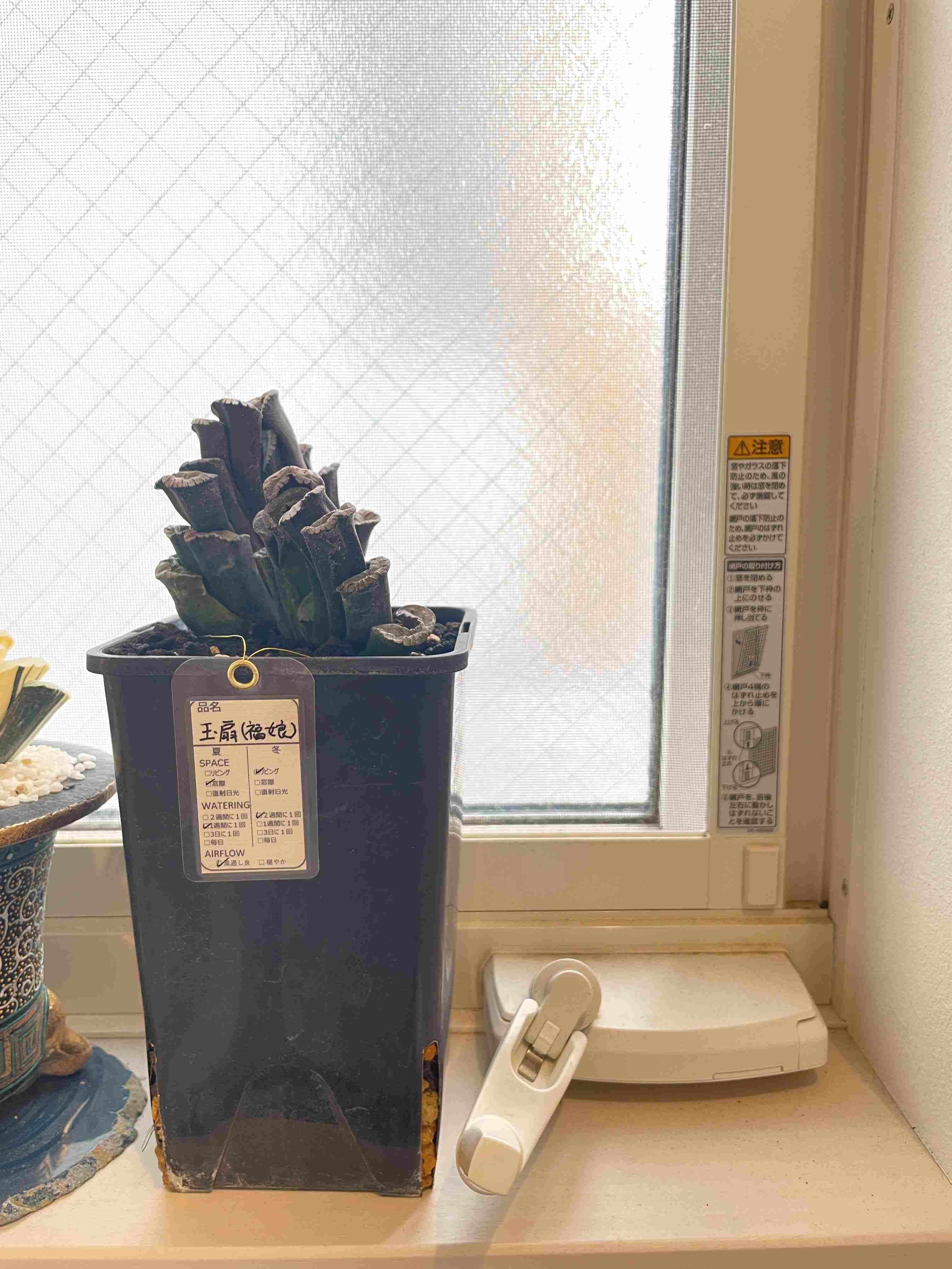 ここから光の加減を整え、じっくりと時間をかけて仕立て直すことで、玉扇本来のぎゅっと詰まった重厚なフォルム、そして福娘特有の美しい窓模様を再構築していく。そんな「植物と対話しながら育て上げる」という、多肉植物栽培の醍醐味を存分に味わえる一鉢です。