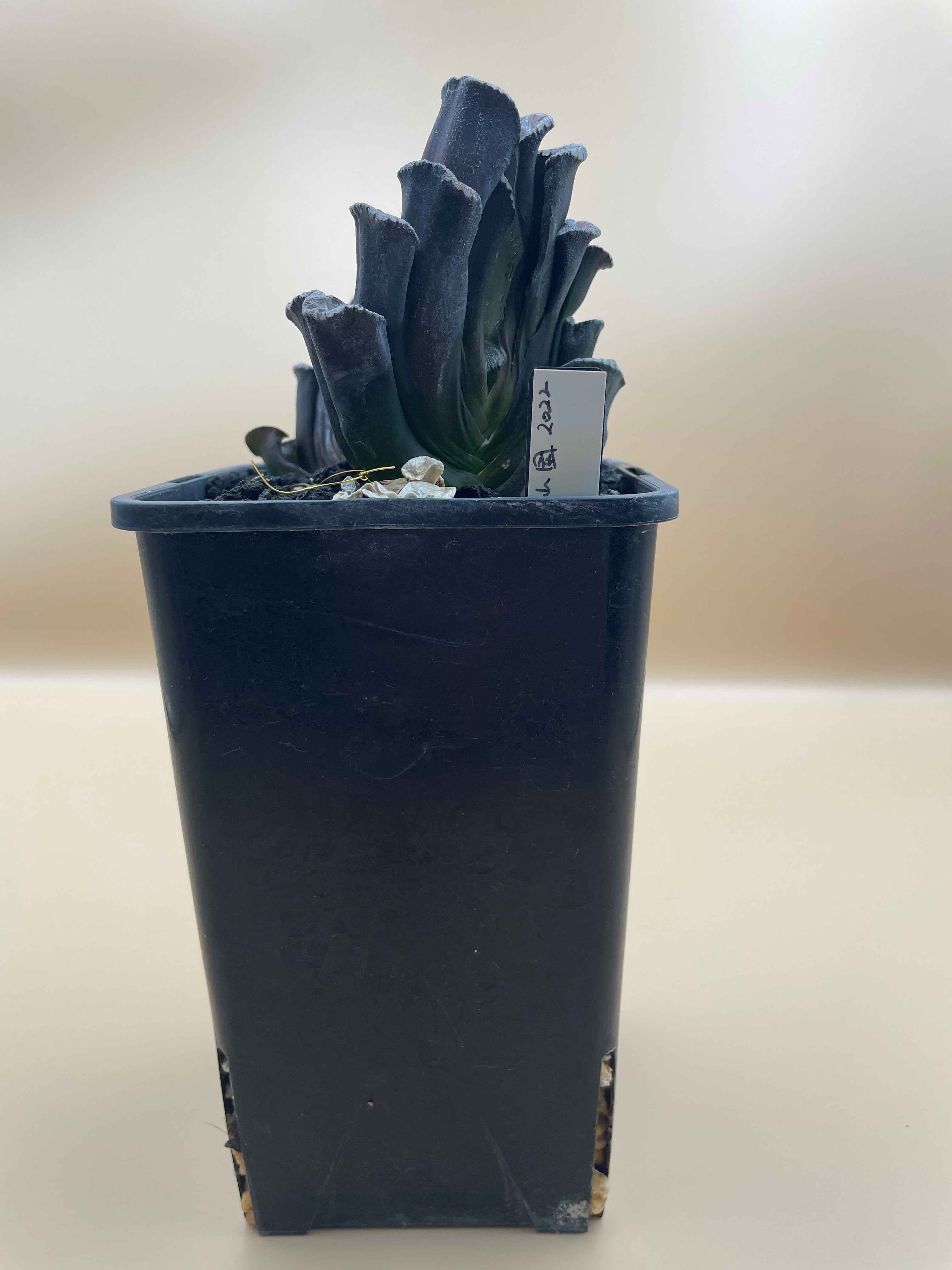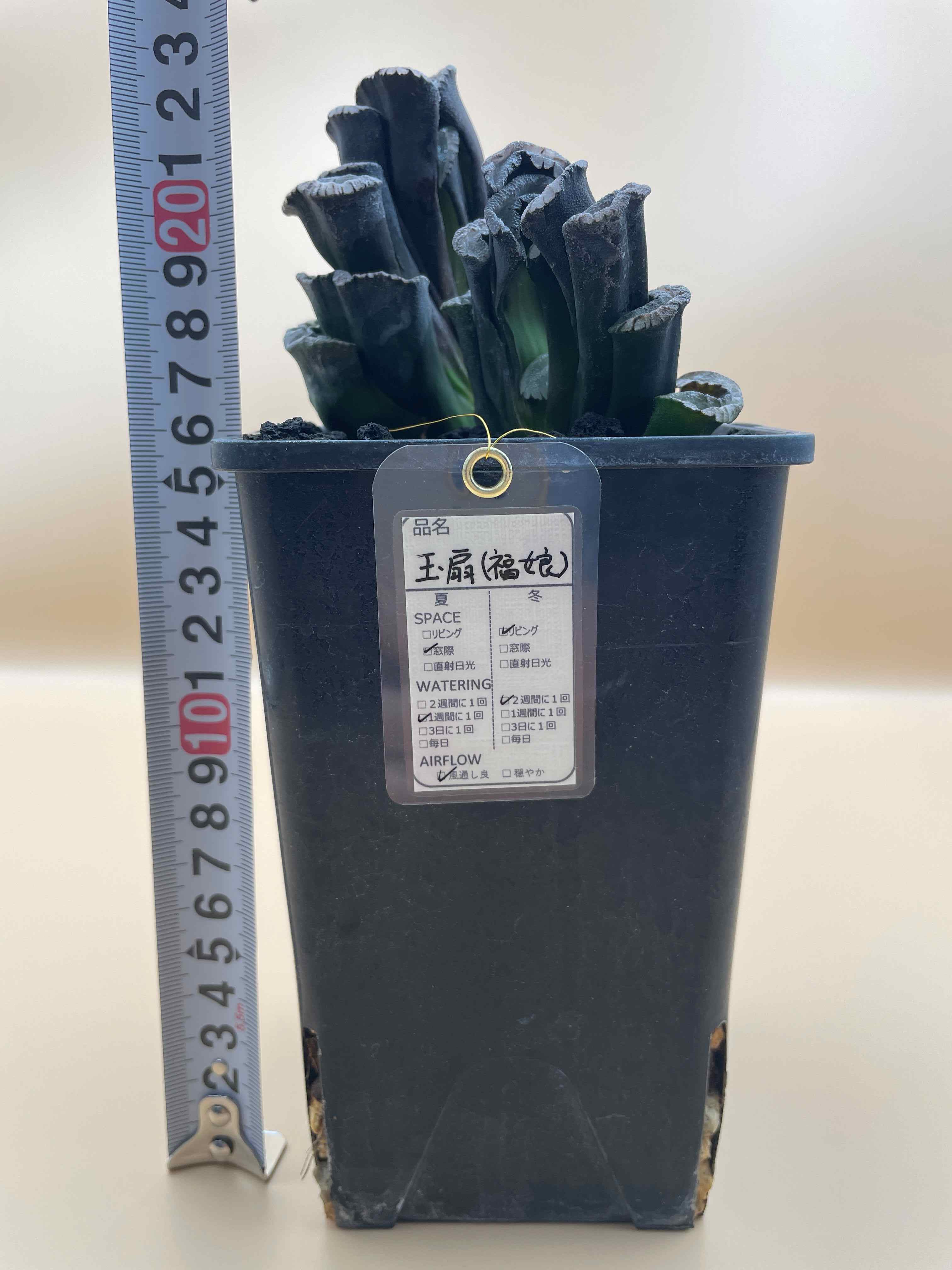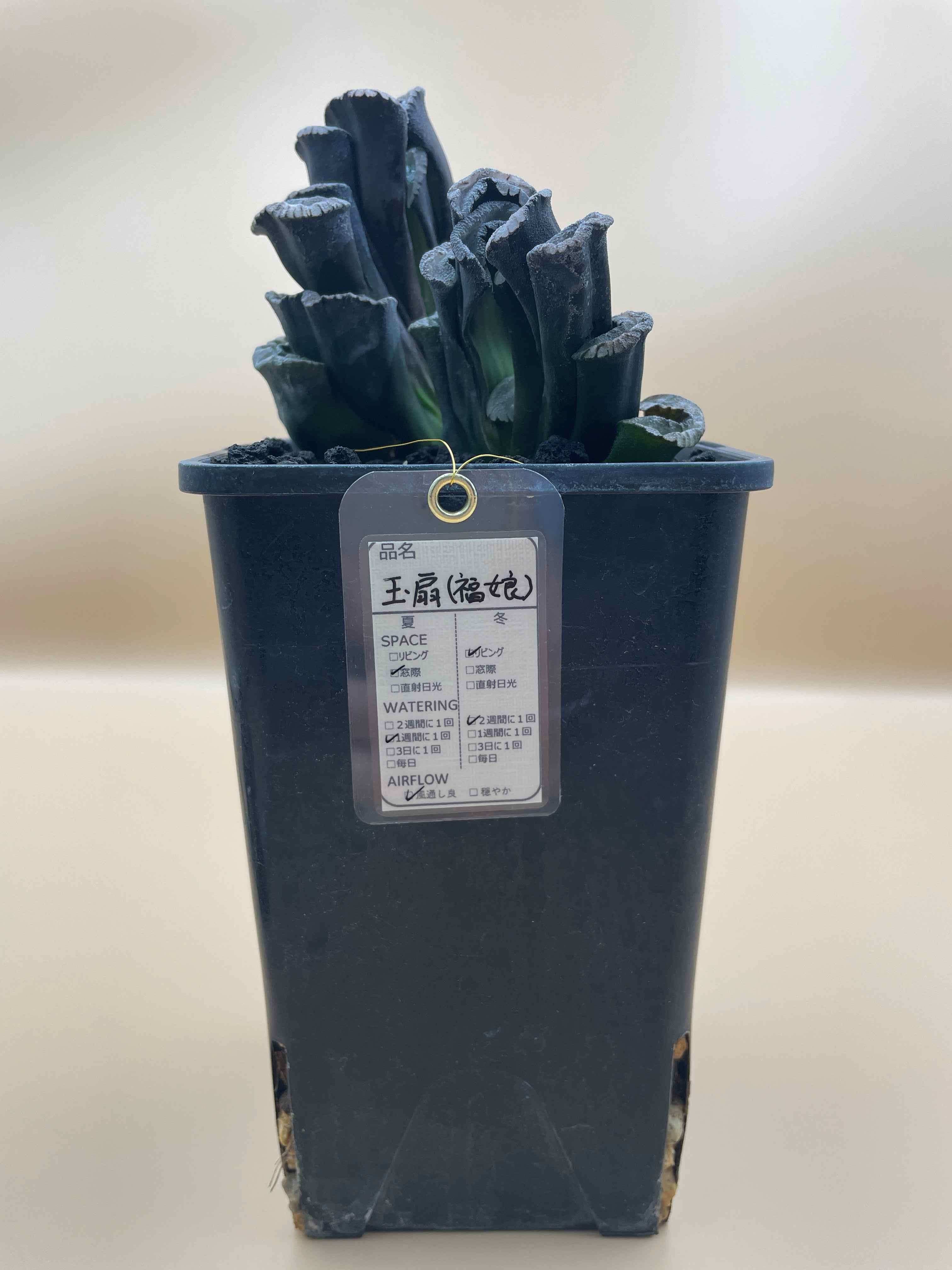 ハオルチアの中でも、その建築的で力強い佇まいから愛好家を魅了してやまない「玉扇」 。本株は、2022年に池袋にある多肉植物の老舗名店にて厳選し、購入した「福娘」です。