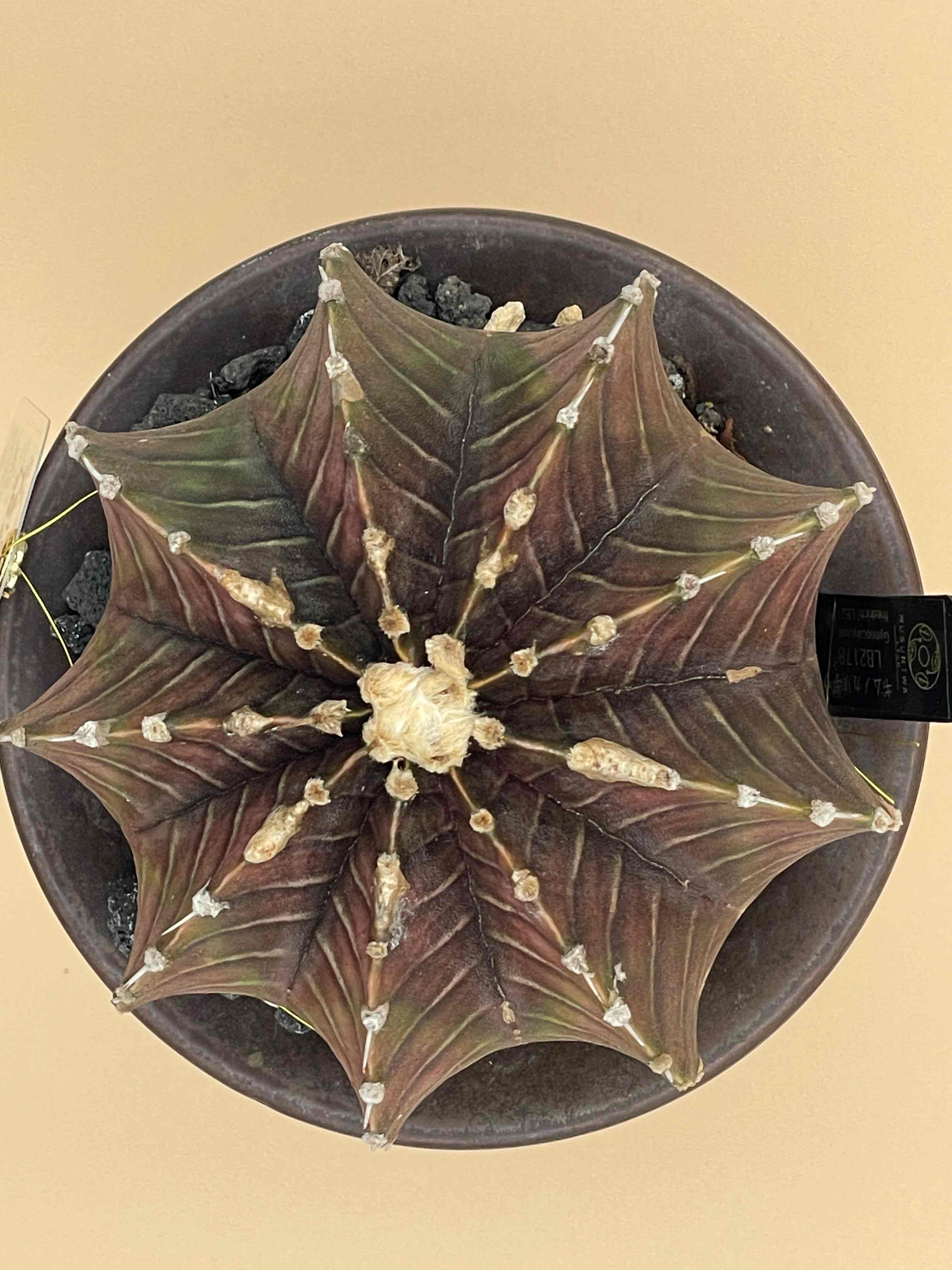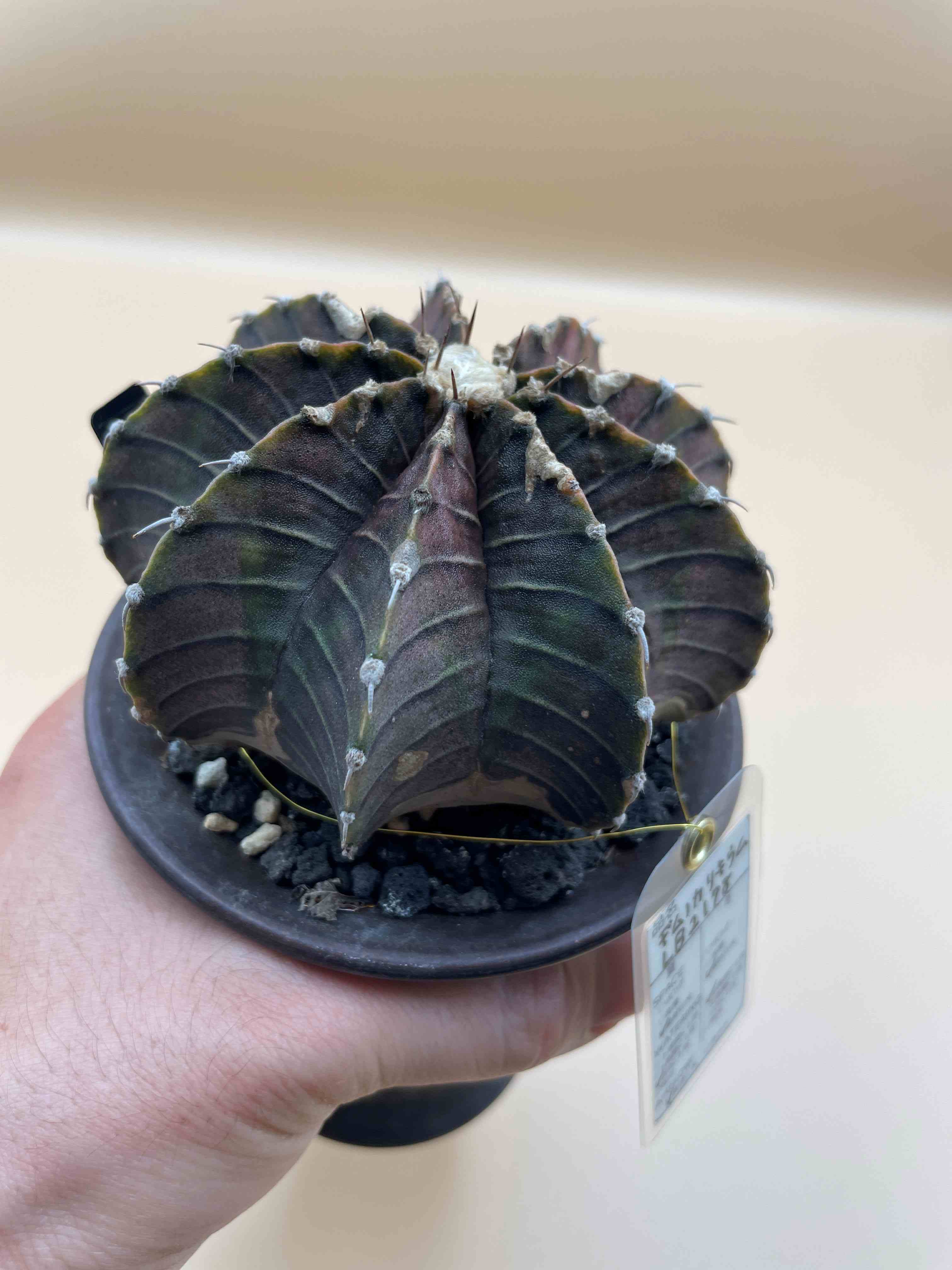 ■ 伝説の血統:LB2178が語る造形 「LB2178」という名は、パラグアイの東部、未開の地でこの株が見出された際の採集番号(フィールドナンバー)に由来します。かつての「牡丹玉」とは一線を画す、その極めて扁平で鋭い稜(りょう)、そして下向きにカールする繊細な棘。野生の厳しさを体現したかのようなディープグリーンの肌と、規則正しく刻まれた横縞模様は、まさにアンデスの風土が作り上げた「生きた彫刻」です。